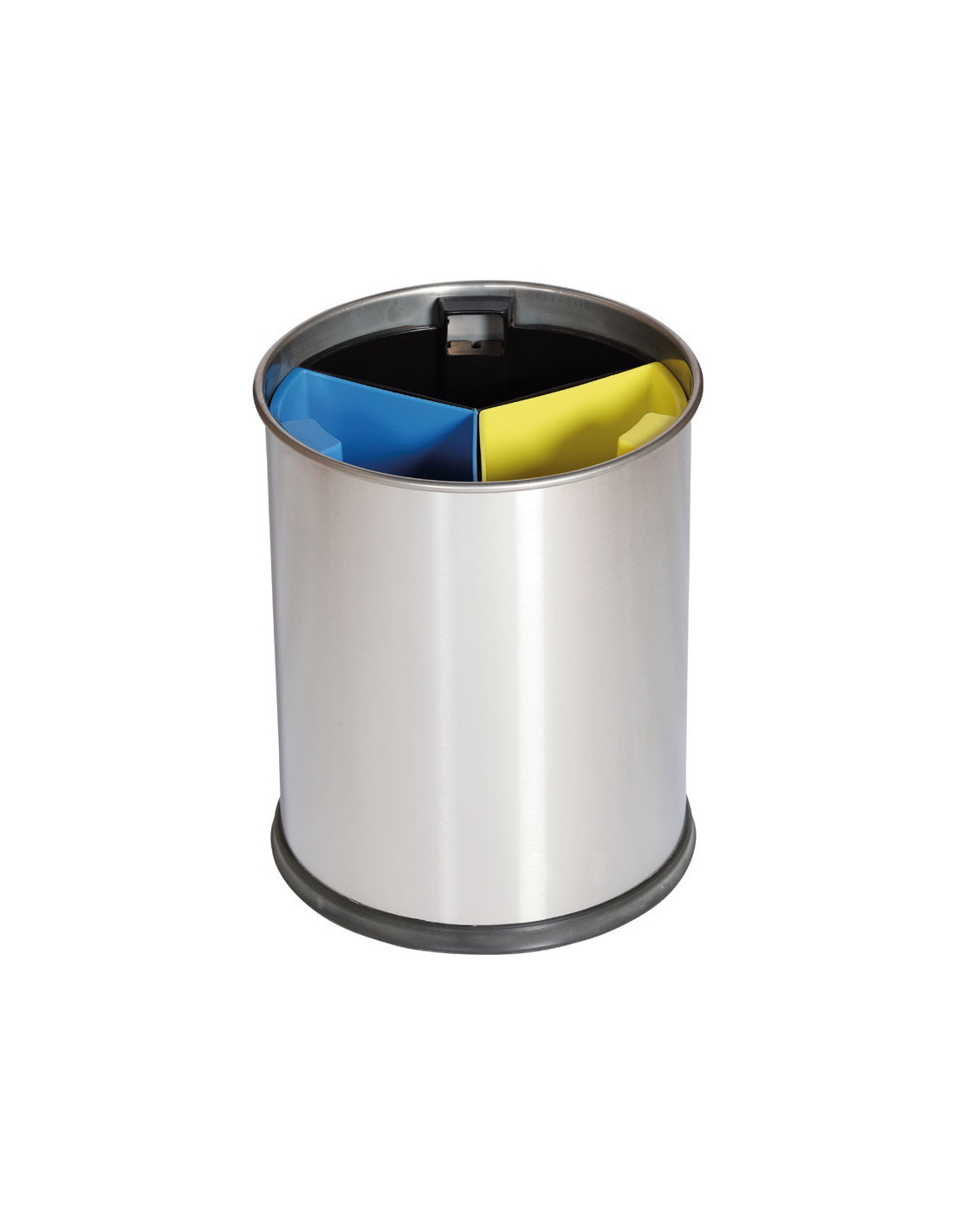 Papelera separación de residuos c/recipientes separadores de colores - 13 L - 25,5 Ø x 30,8 cm - Acero inoxidable satinado
