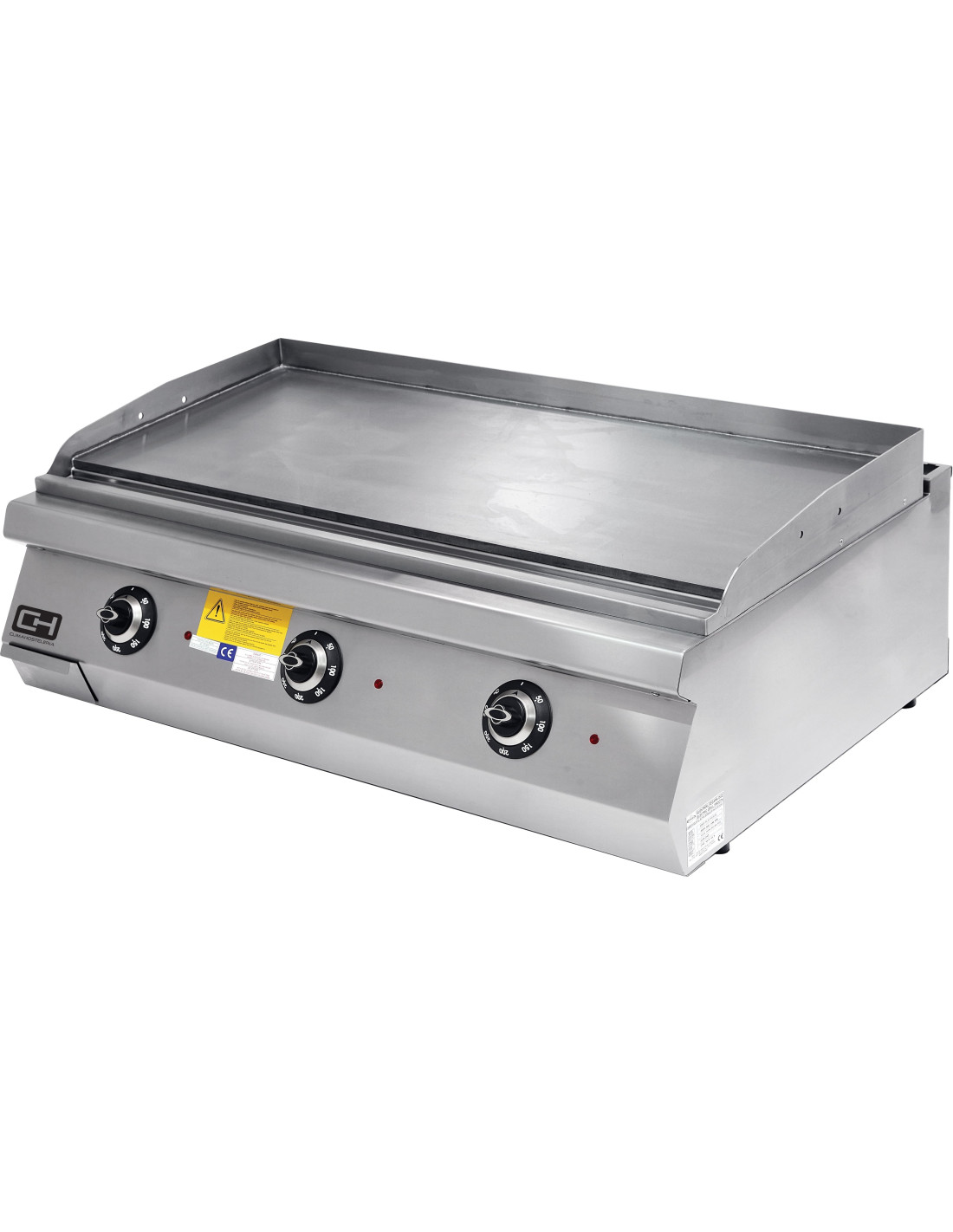 • Placa de cocción de acero rectificado de 12 mm. de espesor con peto en acero inoxidable soldado desde la parte superior que asegura su estanqueidad y facilita la labor de limpieza diaria.